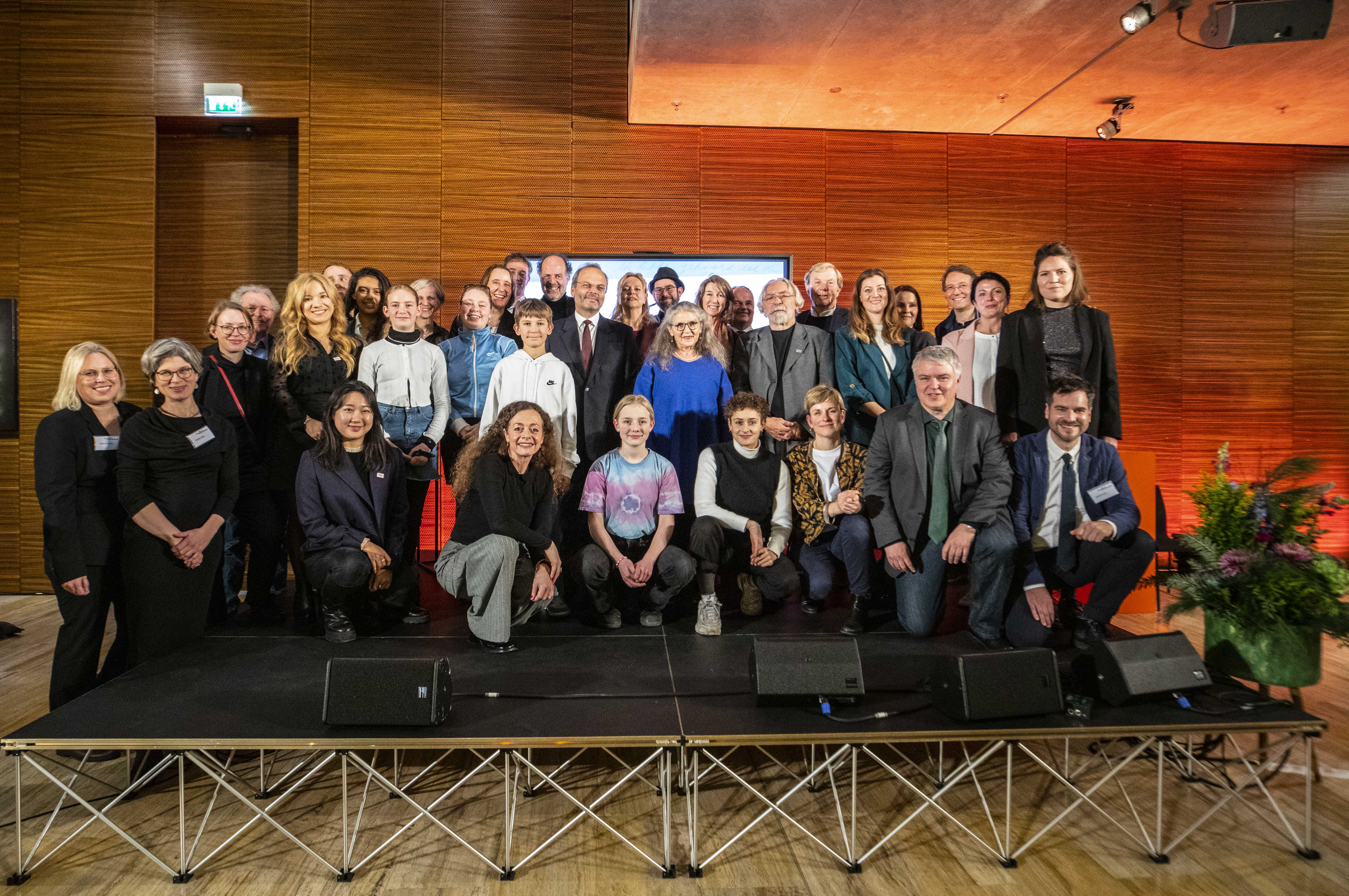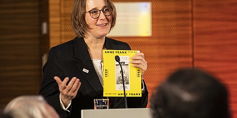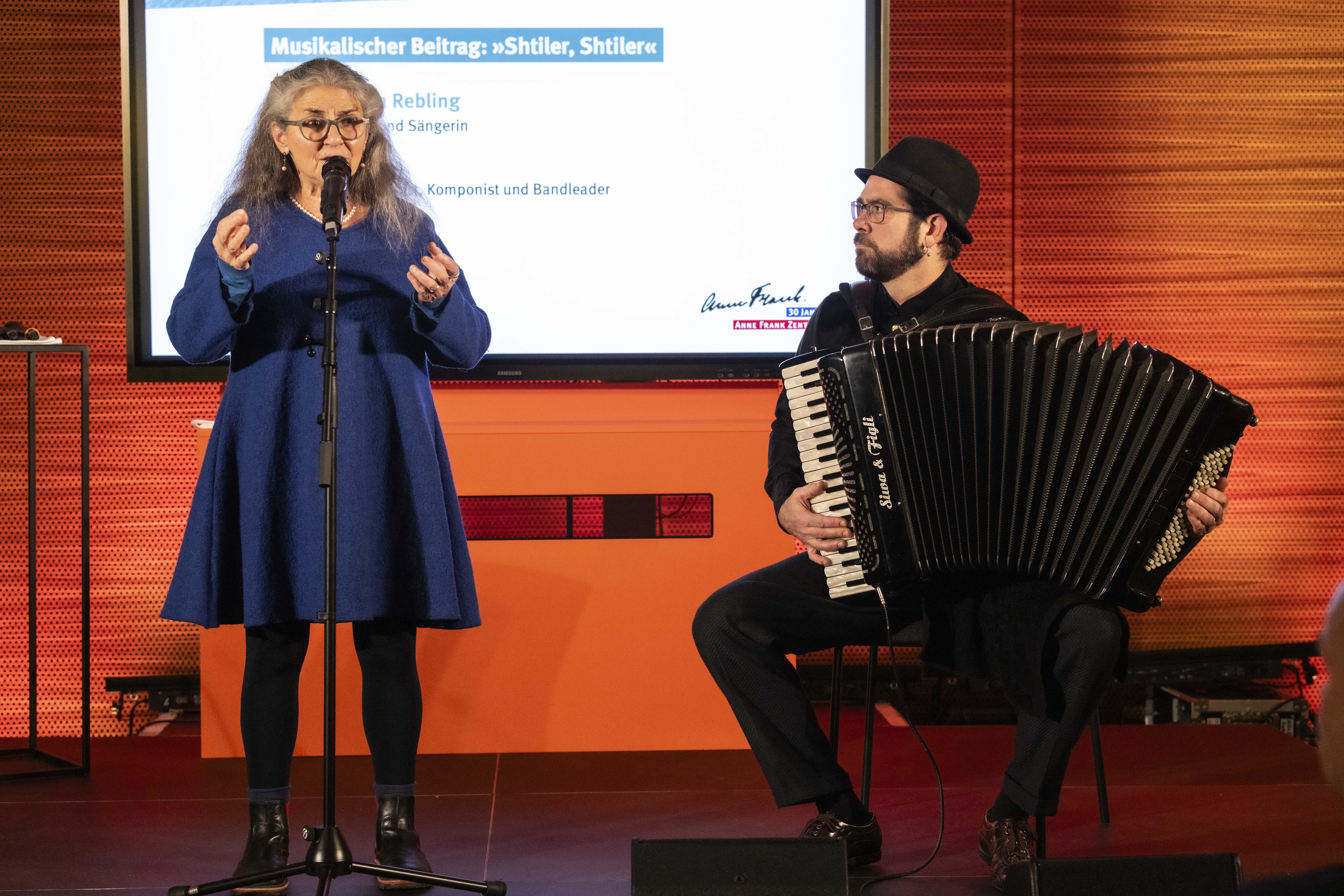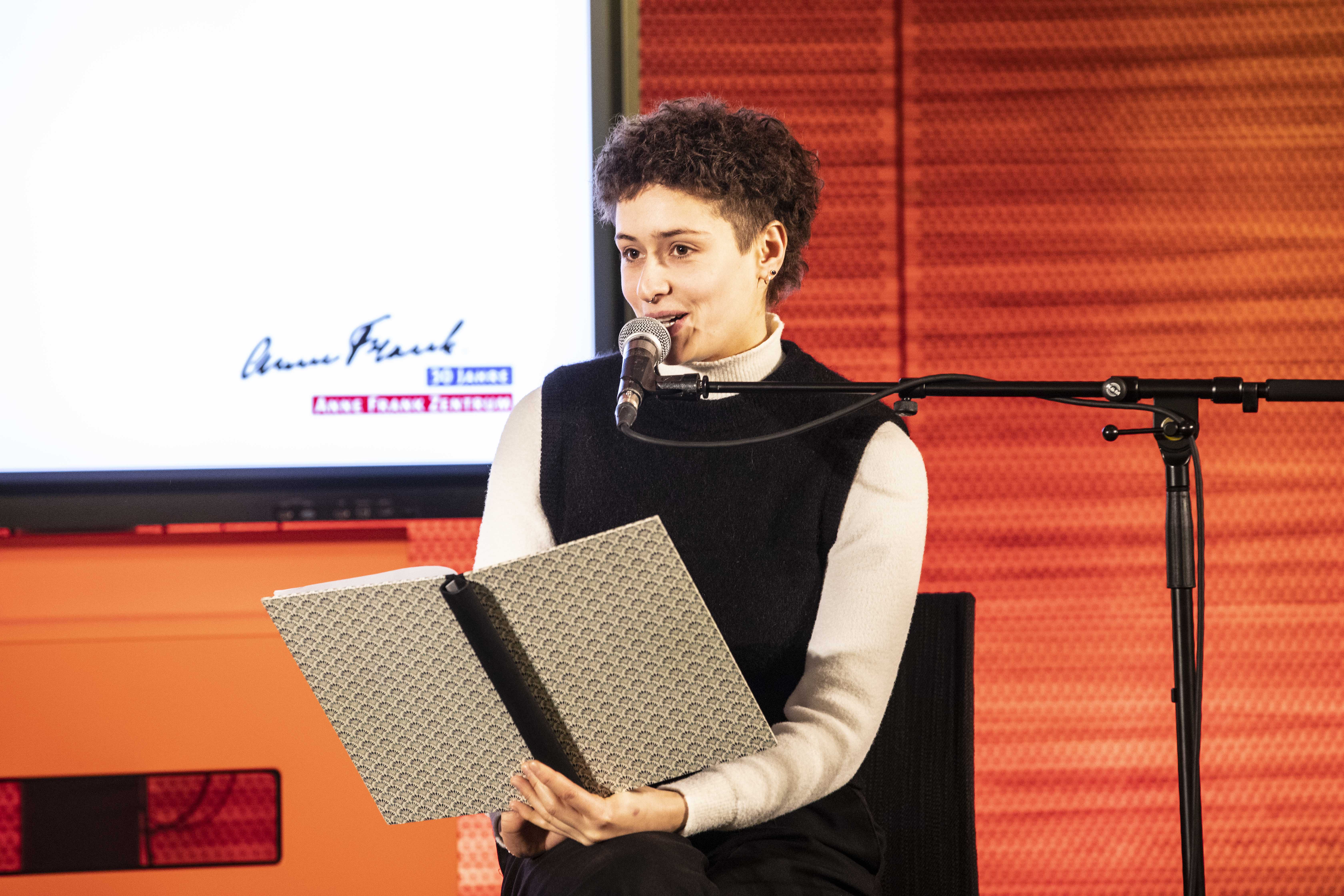 Hester Somsen, Botschafterin des Königreichs der Niederlande, sowie Dr. Felix Klein, Beauftragter der Bundesregierung für jüdisches Leben in Deutschland und den Kampf gegen Antisemitismus, hielten Grußworte. Zudem las die mit Anne Frank verwandte Schauspieler*in Leyb-Anouk Elias Auszüge aus deren Tagebuch. Ulrich Funk und Thomas Heppener, die Initiatoren des Anne Frank Zentrums, erinnerten an die Anfänge in den 1990er-Jahren. Ronald Leopold, Direktor des Anne Frank Hauses in Amsterdam, vermittelte eindrucksvoll, welche Relevanz das Anne Frank Zentrum als deutsche Partnerorganisation für ihn hat. Zudem erklärten Schüler*innen der Anne Frank Grundschule Berlin, warum ihnen die Erinnerung an Anne Frank wichtig ist und weshalb sich ihre Schule gegen Diskriminierung einsetzt. Über eigene Projekte für eine demokratische Zukunft sprachen die Anne Frank Botschafter*innen. Chasan Jalda Rebling, Tochter der Zeitzeugin Lin Jaldati, gestaltete gemeinsam mit Patrick Farrell die musikalische Rahmung. Die Direktorin des Anne Frank Zentrums Veronika Nahm dankte ihrem engagierten Team und berichtete über aktuelle Herausforderungen für den gemeinnützigen Verein und äußerte ihre Wünsche für die Zukunft.