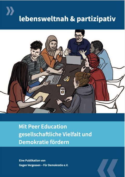 In der Publikation »lebensweltnah&partizipativ. Mit Peer Education gesellschaftliche Vielfalt und Demokratie fördern« von Gegen Vergessen – Für Demokratie e.V. berichten neben dem Anne Frank Zentrum sieben weitere Bildungseinrichtungen von ihren Erfahrungen mit dem pädagogischen Ansatz der Peer Education. Die Publikation bündelt diese Erfahrungen und beinhaltet Tipps für pädagogische Fachkräfte zur Gestaltung eigener Peer-Projekte. Peer Education ermöglicht das Lernen von und mit Menschen, die einen ähnlichen Erfahrungshintergrund haben und Lebenswelten teilen.