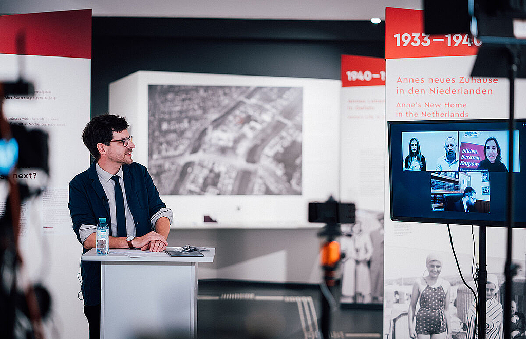 Aktuell entwickelt das Anne Frank Zentrum eine neue Wanderausstellung für den Strafvollzug. Daneben wurden bereits verschiedene zielgruppenspezifische Bildungsangebote für Inhaftierte entwickelt, darunter auch eLearning-Angebote. Über die Lernplattform elis (eLearning im Strafvollzug), die in vielen deutschen und österreichischen Haftanstalten zugänglich sind, werden zwei Lernspiele bereitgestellt: »Das Kurierkomplott« ist ein eLearning-Angebot zur Auseinandersetzung mit Verschwörungsmythen und wurde 2022 mit dem bap-Preis vom Bundesausschuss Politische Bildung ausgezeichnet. Das im Folgejahr entstandene Lernspiel »#FollowMe«, vermittelt Spielenden in einem fiktiven sozialen Netzwerk den Umgang mit Hasskommentaren und Falschbehauptungen und schult die Quellen- und Medienkompetenz.