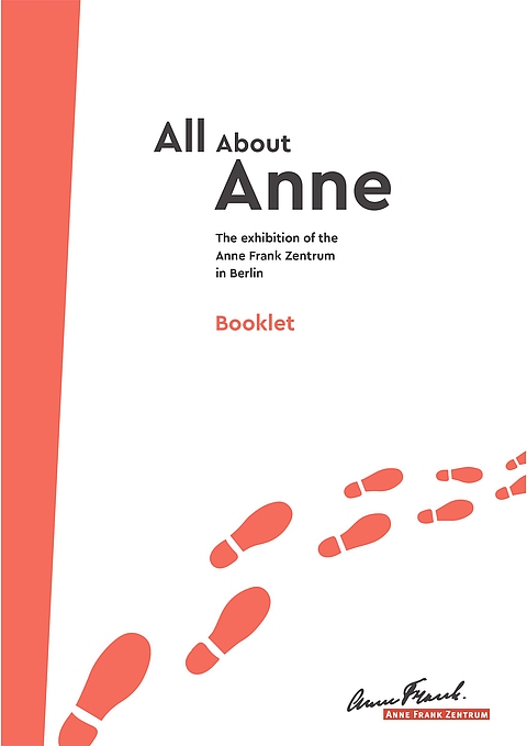 The accompanying booklet supports the individual tour of young adults in the exhibition "All about Anne". It is particularly suitable for groups without an educational programme. The booklet leads to the most important stations and offers opportunities for discussion on the topics of the exhibition. The material is available for a small charge in German and English from the staff* at the entrance. It is also available on our website.